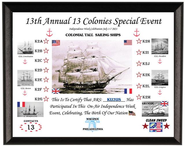 We hope everyone has a wonderful July 4th Holiday. Look forward to hearing you on the air and operating the The 13 Colony Special Event.